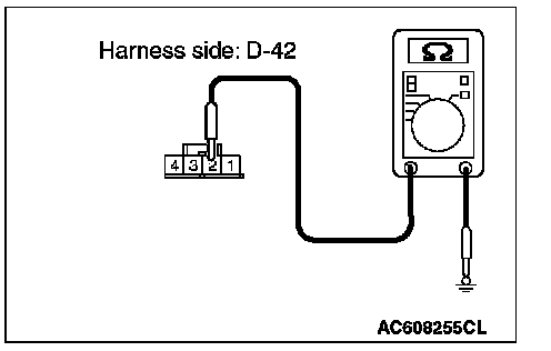 2. Measure the resistance between D-42 lighting control sensor connector terminal No.2 and body ground.