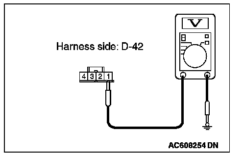 2. Measure the voltage between D-42 lighting control sensor connector terminal No.1 and body ground.