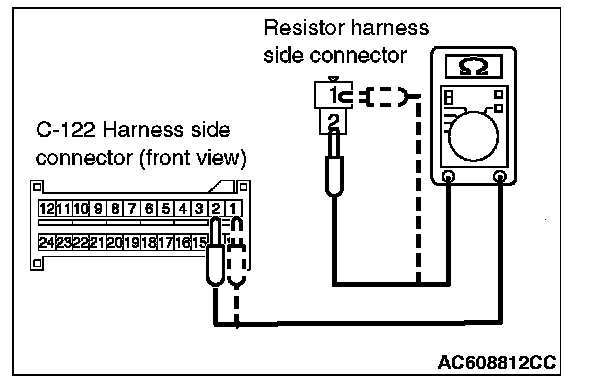 - SRS-ECU connector C-122 (terminal No.2) and the special tool (terminal No.2)