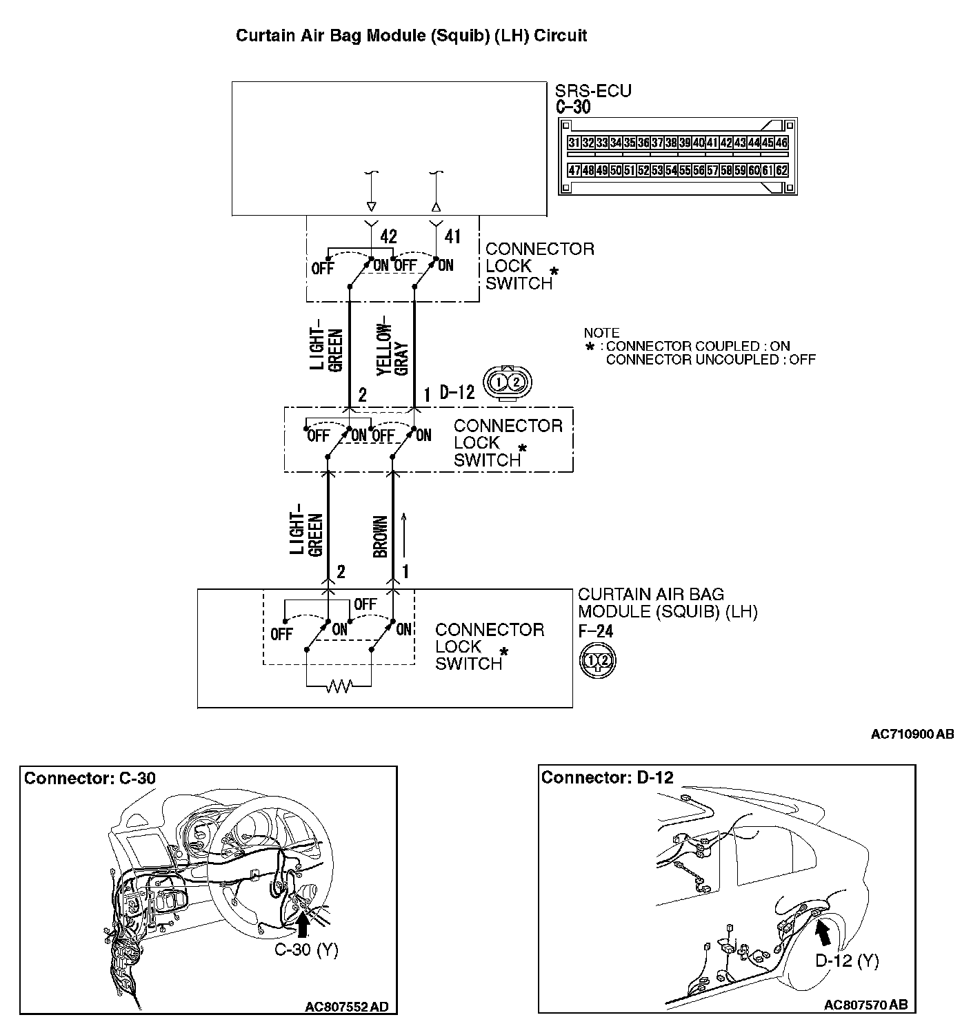 - The ignition signal is input to the curtain air bag module (LH) to inflate the curtain air bag.