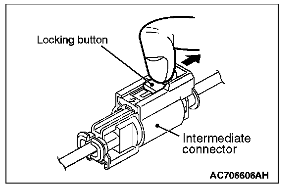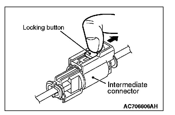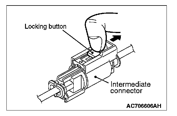 2. Disconnect the D-12 intermediate connector unlock the connector by sliding the locking button to the direction of the arrow as shown in the figure, and then disconnect the connector.