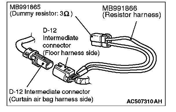 DANGER: To prevent the air bag from deploying unintentionally, disconnect the intermediate connector D-12 to short the squib circuit.