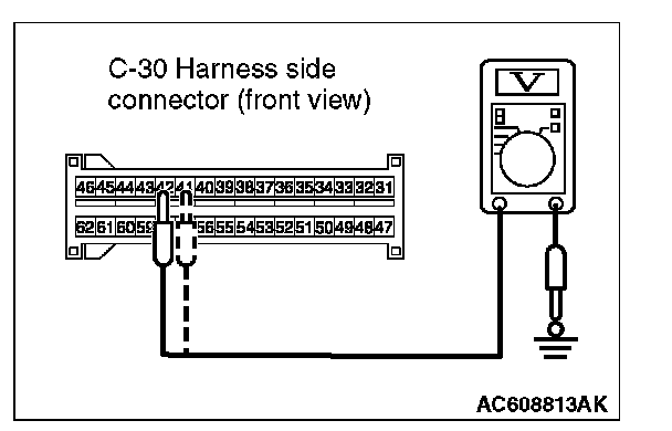 7. Measure the voltage between the C-30 wiring harness side connector terminal No. 41, 42 and body ground.