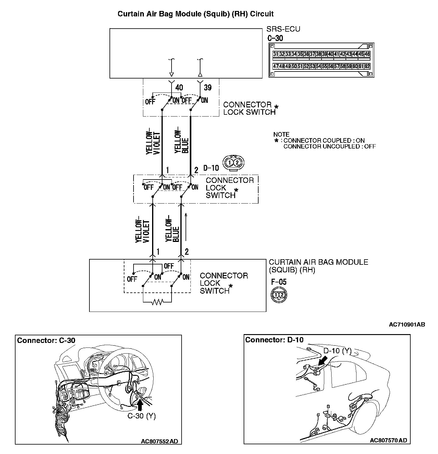 - SRS-ECU connector C-30 (terminal No.40) and the intermediate connector D-10 (terminal No.1)