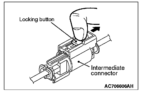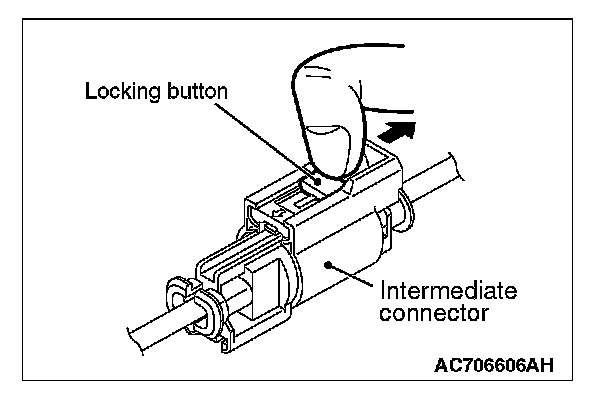 2. Disconnect the D-10 intermediate connector unlock the connector by sliding the locking button to the direction of the arrow as shown in the figure, and then disconnect the connector.