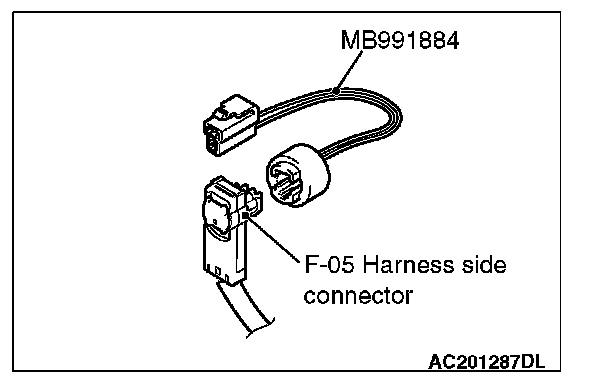 5. Connect special tool MB991884 to the removed F-05 harness side connector.