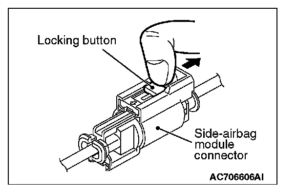 2. Disconnect the D-30 side-airbag module connector, unlock the connector by sliding the locking button to the direction of the arrow as shown in the figure, and then disconnect the connector.
