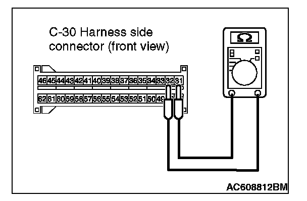 5. Check for continuity between C-30 harness side connector terminals 31 and 32.
