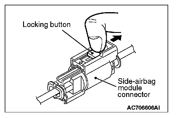 2. Disconnect the D-32 side-airbag module connector, unlock the connector by sliding the locking button to the direction of the arrow as shown in the figure, and then disconnect the connector.