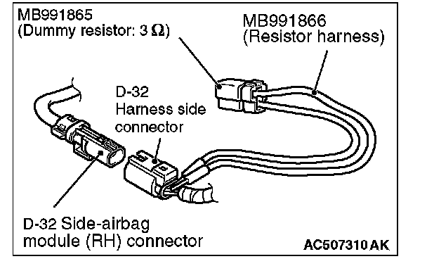 4. Insert special tool MB991866 into the D-32 harness side connector by backprobing.