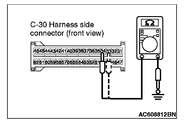 5. Check for continuity between C-30 harness side connector terminals 33, 34 and body ground.
