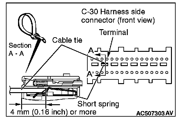 CAUTION: Insert an insulator such as a cable tie to a depth of 4mm (0.16 inch) or more, otherwise the short spring will not be released.