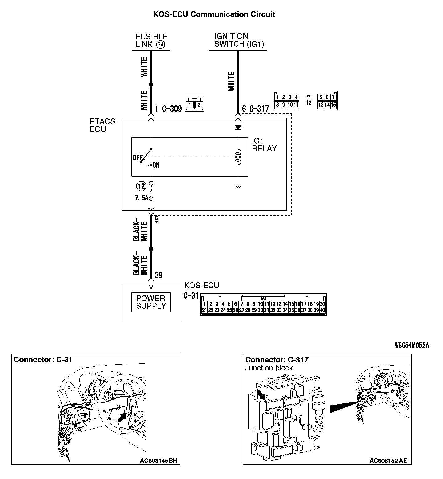 Q : Is ETACS-ECU connector C-317 and KOS-ECU connector C-31 in good condition?