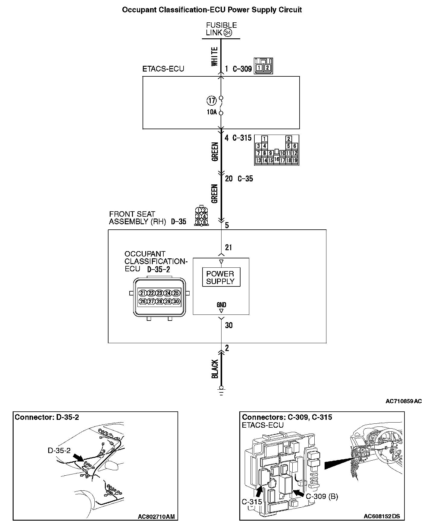STEP 3. Wiring harness check between the C-315 ETACS-ECU connector terminal No. 4 and the D-35-2 occupant classification-ECU connector terminal No. 21.