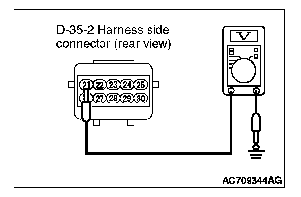 2. Measure the voltage between the D-35-2 harness side connector terminal No. 21 and the body ground.