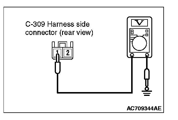 2. Measure the voltage between the C-309 harness side connector terminal No. 1 and the body ground.