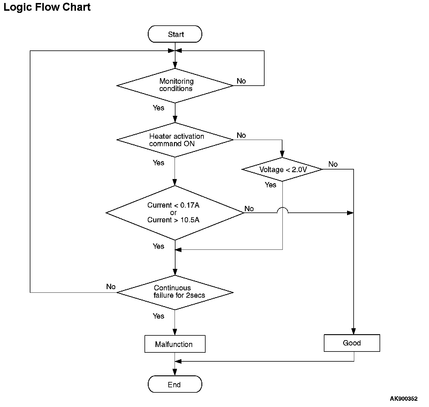 - The ECM checks whether the heater current is within a specified range when the heater is energized.
