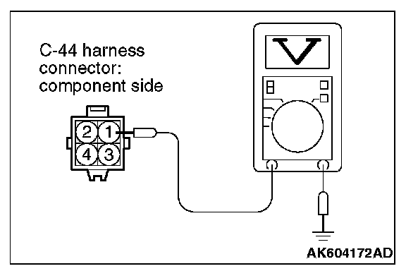 STEP 3. Measure the power supply voltage at heated oxygen sensor (front) harness side connector C-44.