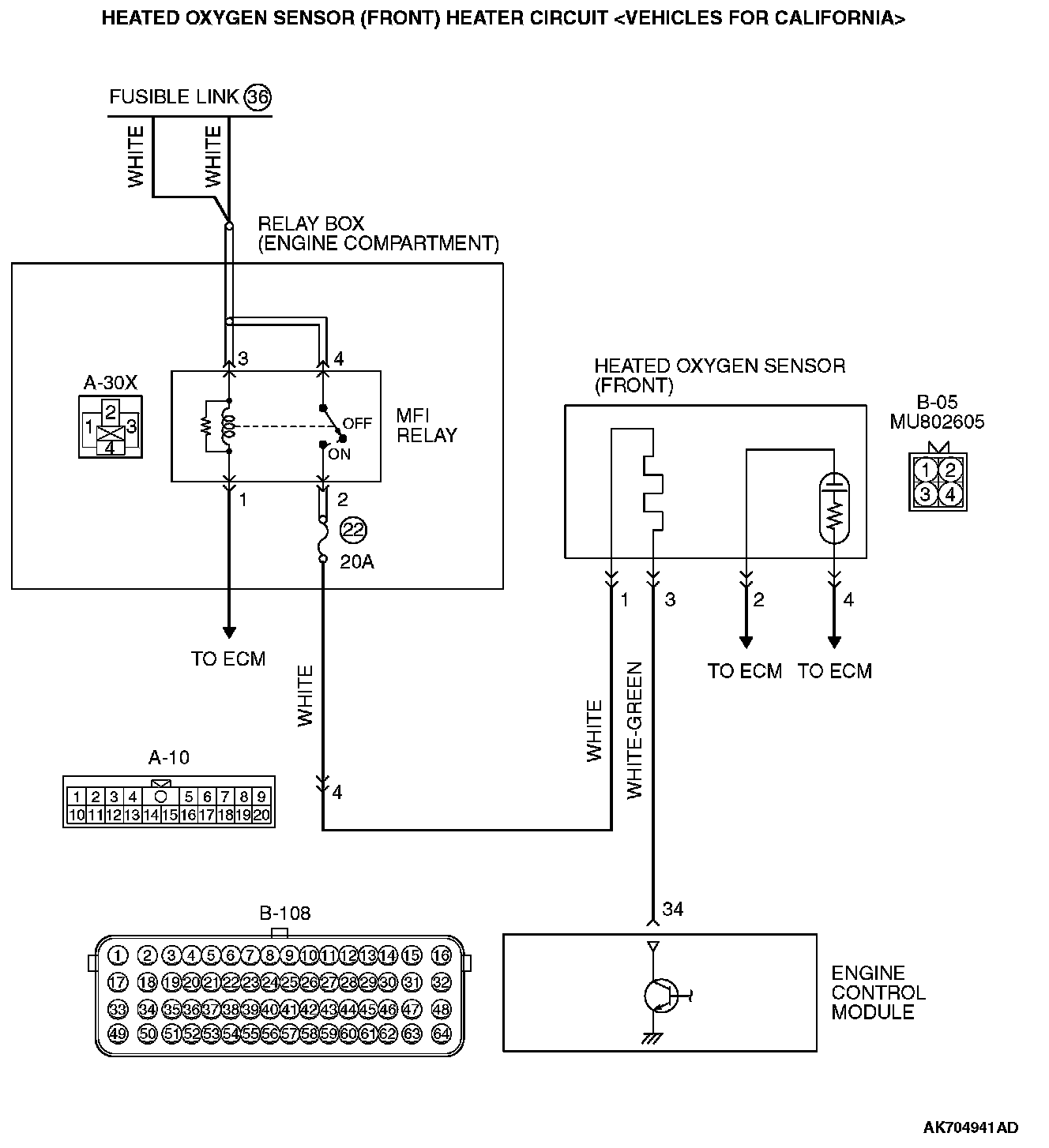 - Power is supplied from the MFI relay (terminal No. 2) to the heated oxygen sensor (front) heater.