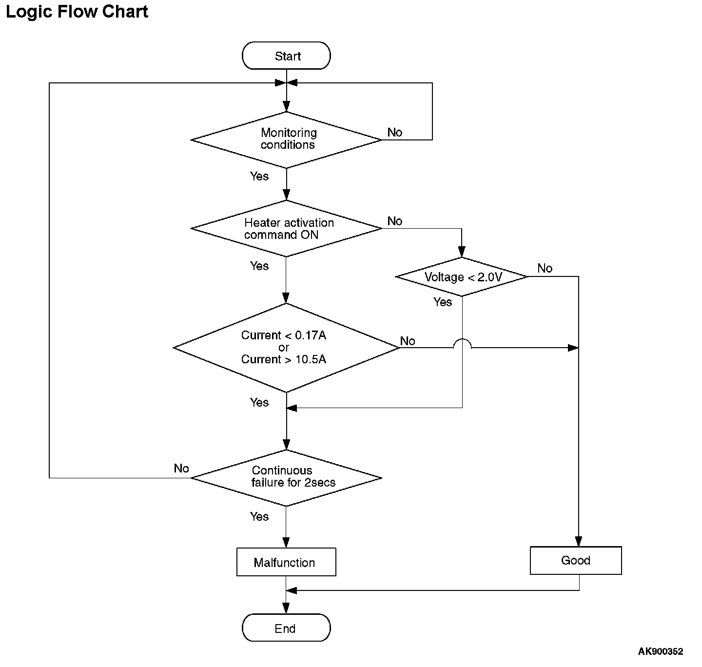 - The ECM checks whether the heater current is within a specified range when the heater is energized.