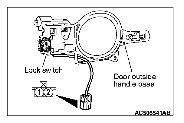 2. Check continuity when the lock switch (front passenger's side) is operated to "ON" or "OFF" position.