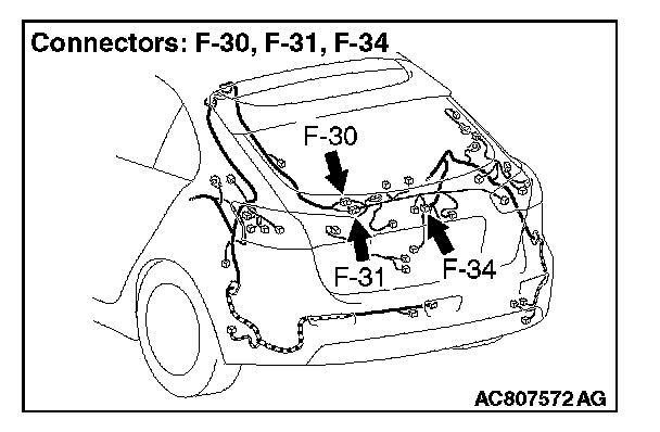 STEP 2. Check KOS-ECU connector C-31 and lock switch (liftgate) connector F-34 for loose, corroded or damaged terminals, or terminals pushed back in the connector.