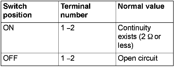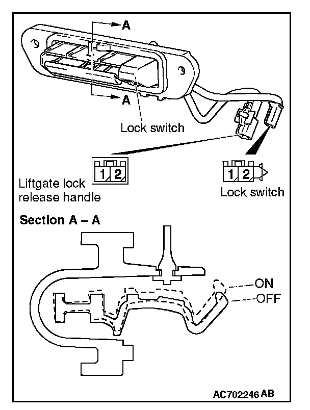 2. Check continuity when the lock switch (liftgate) is operated to "ON" or "OFF" position.