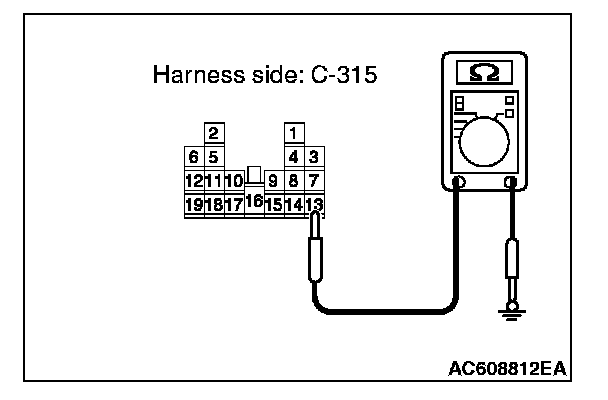 3. Resistance between the ETACS-ECU connector C-315 terminal No. 13 and the ground.