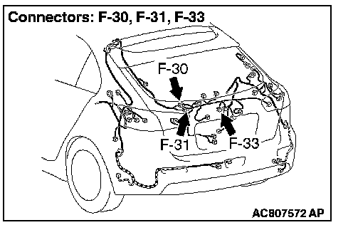 STEP 1. Check liftgate lock release handle connector F-33 for loose, corroded or damaged terminals, or terminals pushed back in the connector.