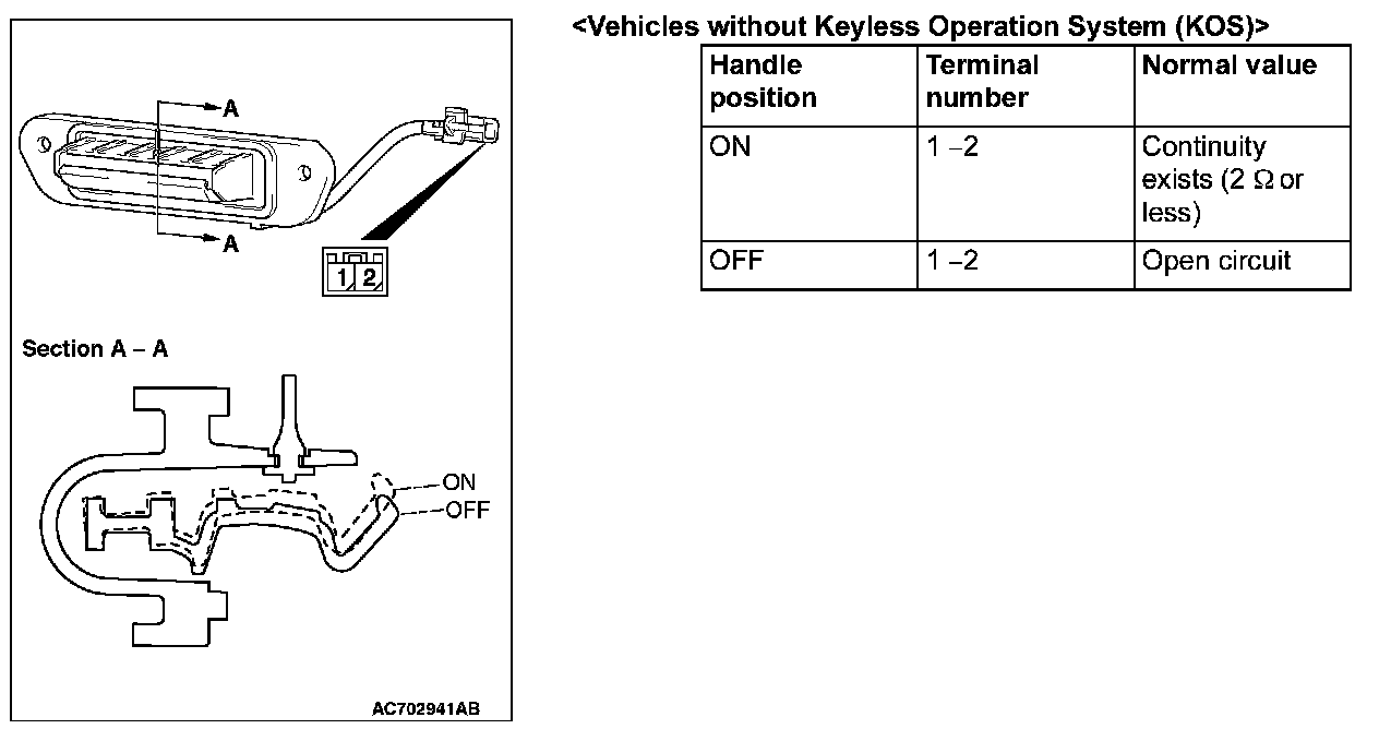 NO : Replace the ETACS-ECU. If the liftgate lock release handle operates normally, a correct signal is sent from the liftgate lock release handle.