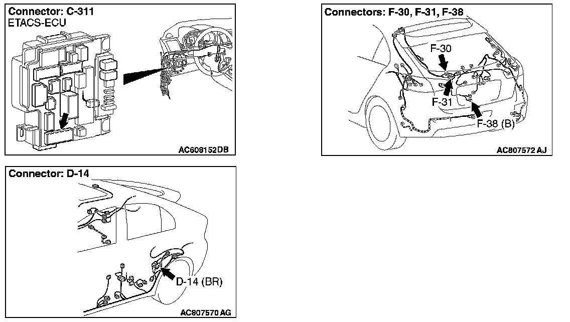 STEP 8. Check ETACS-ECU connector C-311 for loose, corroded or damaged terminals, or terminals pushed back in the connector.