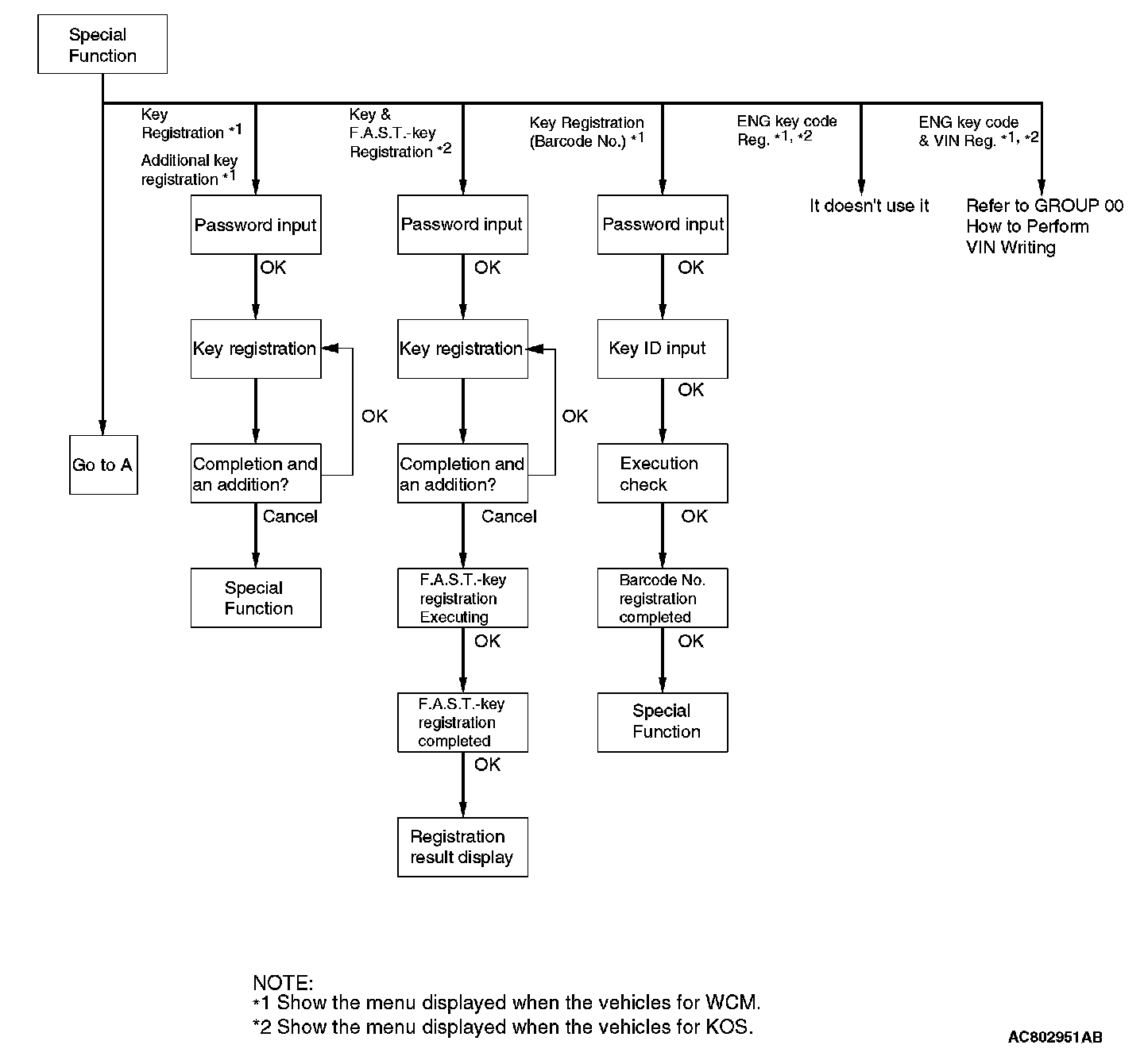 - "Steering lock unit Reg.": When KOS-ECU is replaced but the steering lock assembly is not replaced.