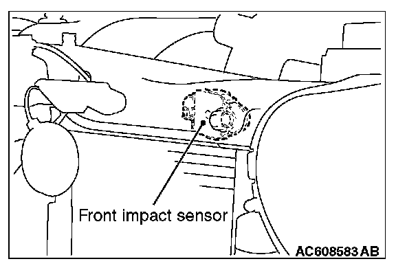 3. Check the front impact sensor wiring harness for binding, check the connector for damage, and check the terminals for deformation.