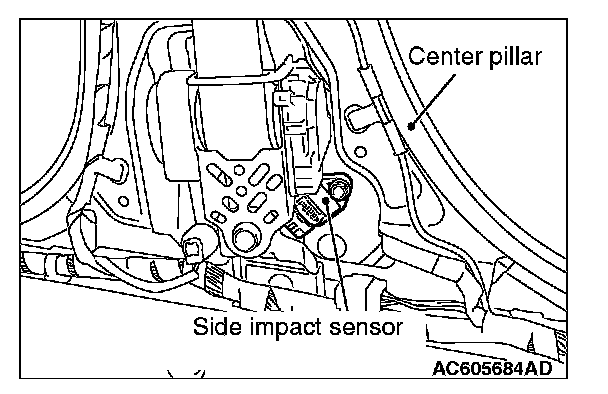 NOTE: The illustration shows the side impact sensor (LH). The position of the side impact sensor (RH) is symmetrical to this.