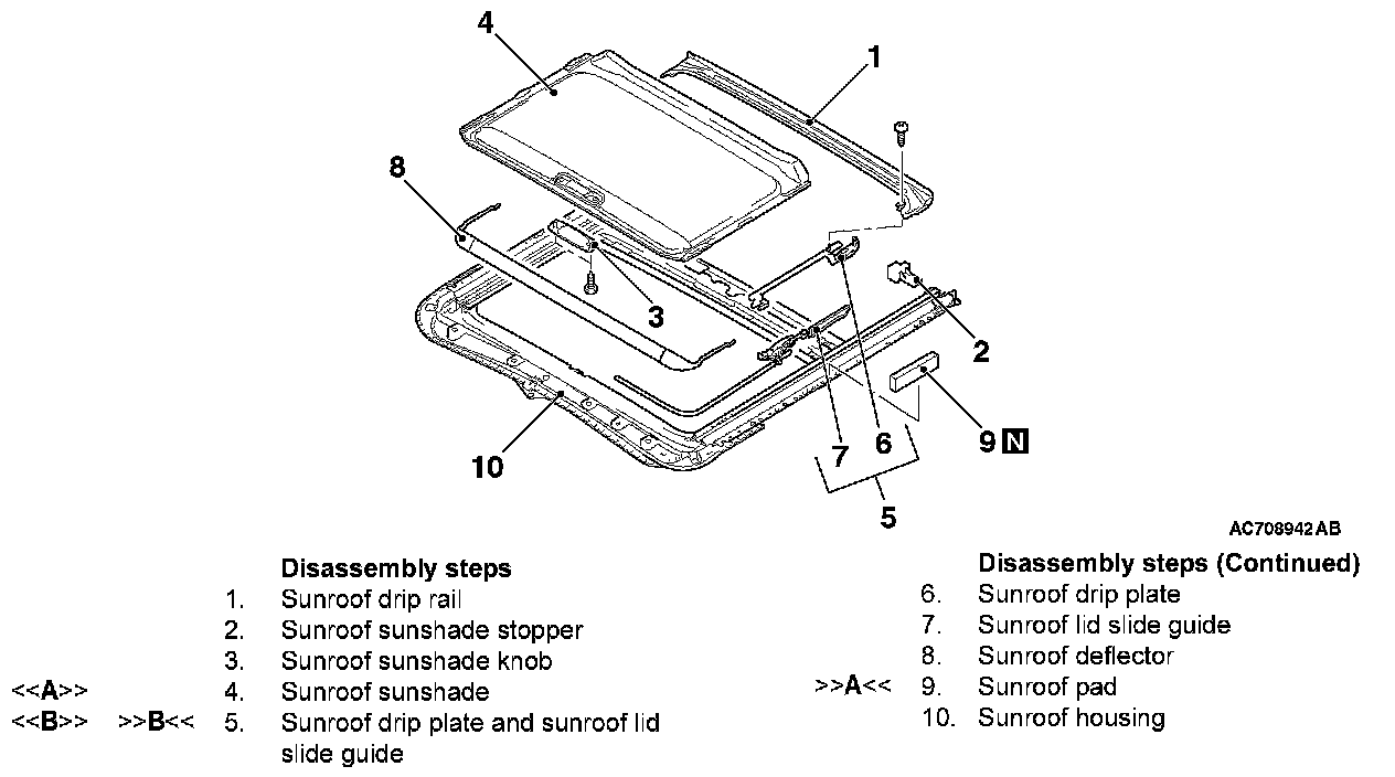 [[B]] SUNROOF DRIP PLATE AND SUNROOF LID SLIDE GUIDE REMOVAL