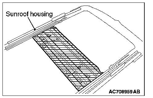 CAUTION: Before removing the sunroof sunshade, clean the shaded area of the sunroof housing shown in the illustration. Otherwise, the sunroof sunshade may get dirty when it is removed.