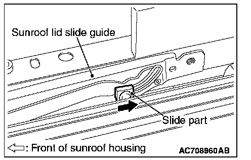 CAUTION: If the slide part of the sunroof lid slide guide is positioned incorrectly, the sunroof may not work normally.