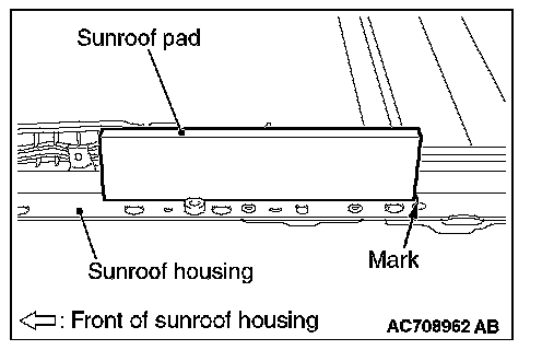 Align the sunroof pad with the mark on the sunroof housing, and then install it.