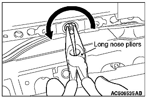 Use a pair of long nose pliers or the like to remove the sunroof assembly while turning it in the direction shown in the figure.