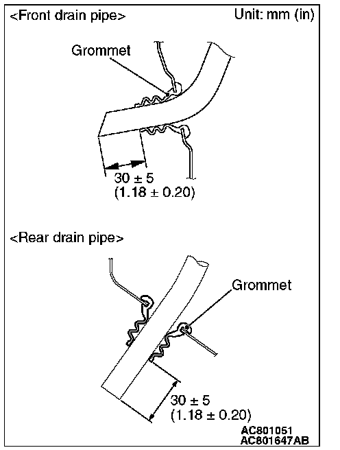 Install the grommet, and adjust the drain pipe projection as shown in the figure.