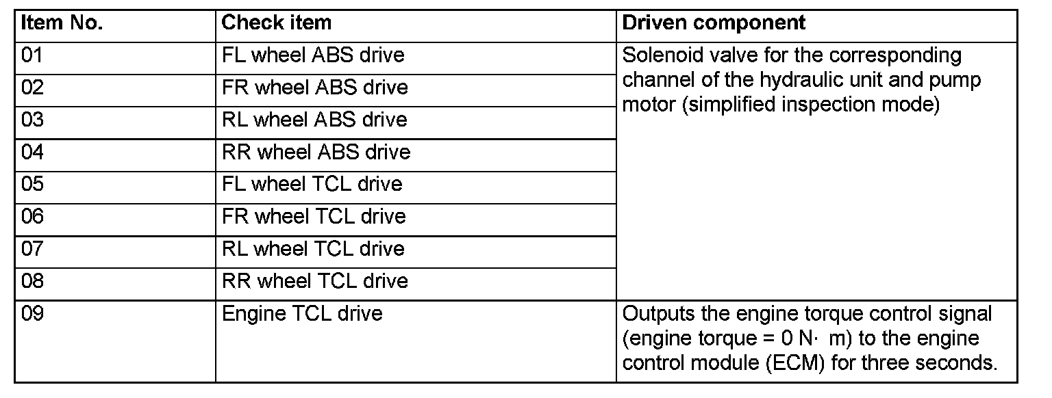 ^ When ASC-ECU is disabled due to the fail-safe function, the actuator test cannot be performed.