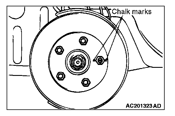 1) Before removing the brake disk, mark the stud bolt on the side of greater run-out and its both sides with a chalk.