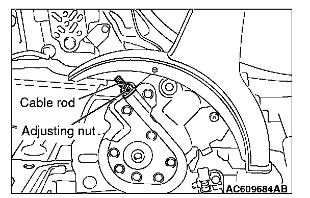 2. Loosen the adjusting nut to the end of the cable rod in order to allow slack in the cables.
