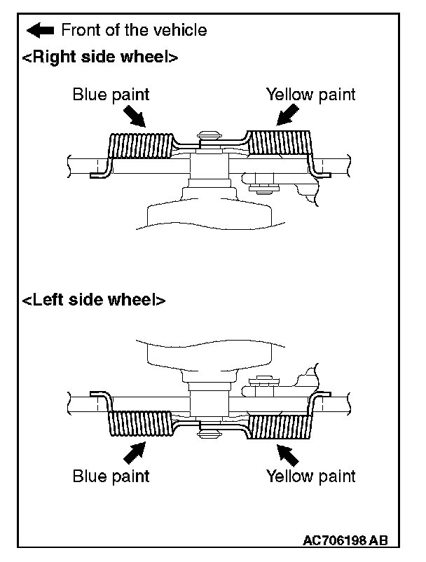 The shoe-to-anchor springs are not interchangeable because their spring loads are different. The one with blue paint mark should be installed to the front of the vehicle, and the other with yellow paint to the rear of the vehicle, respectively.