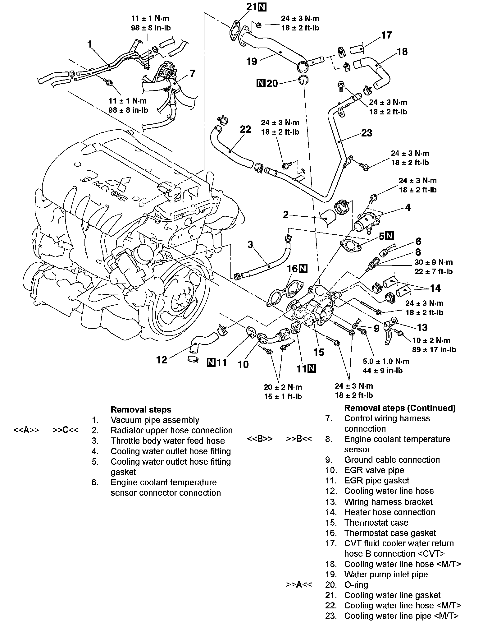 WATER HOSE AND WATER PIPEREMOVAL AND INSTALLATION [2.4L ENGINE]