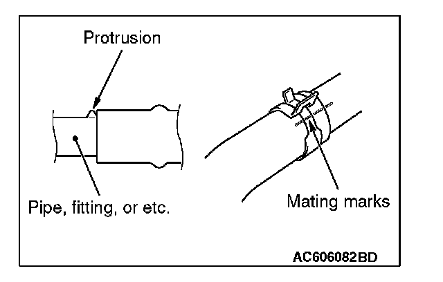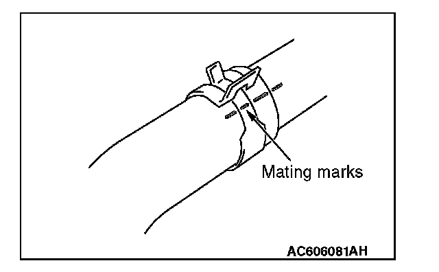 Make mating marks on the radiator upper hose and the hose clamp as shown to install them in the original position. Then, remove them.