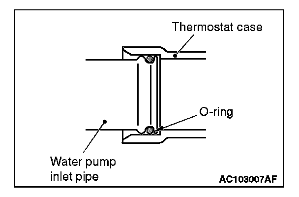Fit the O-ring in the water pump inlet pipe groove, wet the O-ring circumference or the pipe mounting area inner wall, and then insert the O-ring.