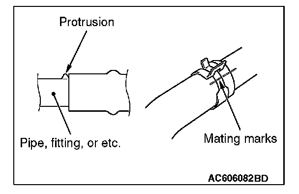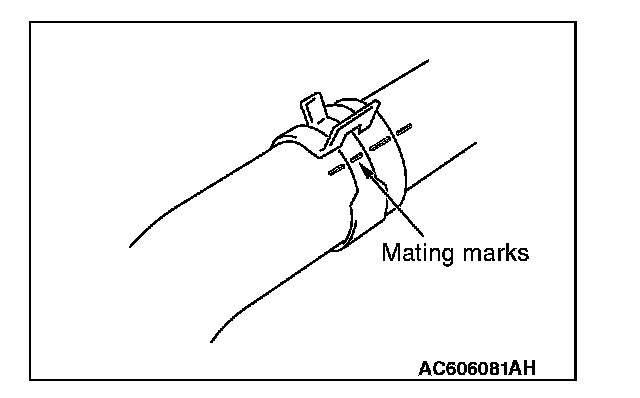 Make mating marks on the radiator hose and the hose clamp as shown to install them in the original position. Then, remove them.