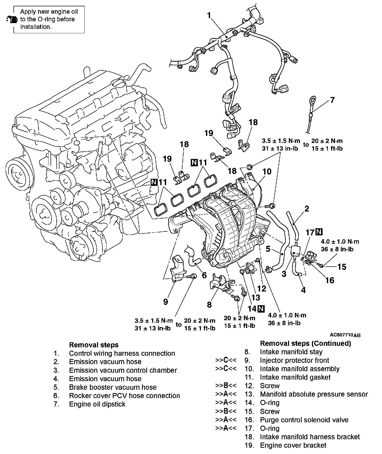 ]]A[[ O-RING/PURGE CONTROL SOLENOID VALVE/O-RING/MANIFOLD ABSOLUTE PRESSURE SENSOR INSTALLATION
