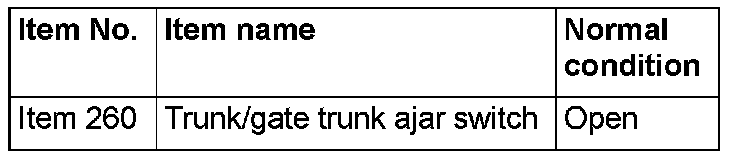 Q: Does scan tool MB991958 display the item "Trunk/gate trunk ajar switch" as normal condition?